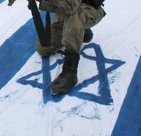 Who has this job? Does he feel a feeling of accomplishment when he finishes painting the flag to be trodden upon? Was he embarrassed that the first star was not up to the correct standards and his sense of pride forced him to do it right? Did he make a conscious decision to paint the vertical Israeli flag as opposed to the horizontal? If so, was it based on aesthetics, or intended use, or was he simply following Israeli guidelines as to when the vertical flag should be used? Is he happy when his work is destroyed? Does he get paid by Islamic Jihad to paint Israeli flags? If he does a poor job in painting enemy flags, do they punish him?