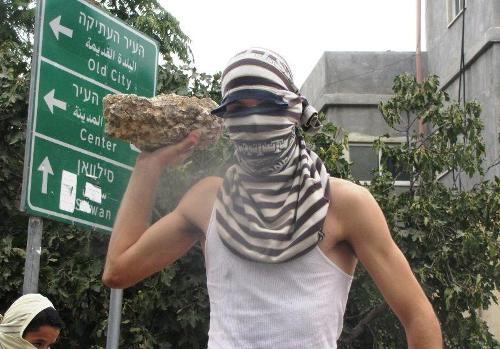 Here is one of the peaceful, non-violent stone throwers among the many rioters who are rampaging through Jerusalem.