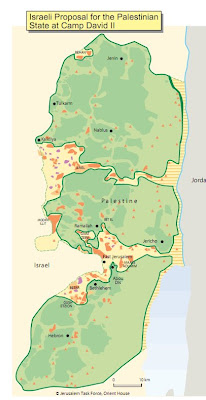 Dennis Ross, who was there, said no map was drawn, but he shows the fake Palestinian Arab version of the map, along with what  the Camp David offer really looked like: