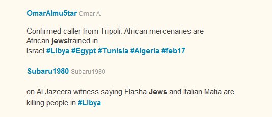 Another rumor says that Israeli-trained African Jews are the mercenaries Gaddafi hired to shoot people: