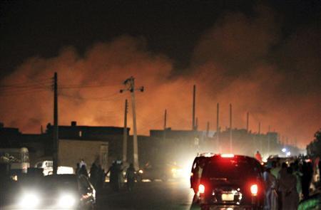 Sudan said on Wednesday that an Israeli air strike had caused the huge explosion and fire at an arms factory in Khartoum that killed two people, but Defense Minister Ehud Barak declined to comment.