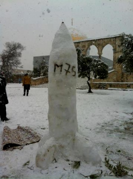Given all the snowballs placed on the arms and ground, it appears to be a celebration of throwing rocks at Jews.