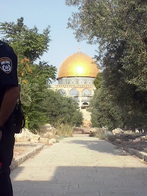 Security had decided to let all the people waiting with us ascend to Har HaBayit. This just doesn't happen. But since the terror attack, and since the Arabs had decided they were boycotting the Mount, the policemen were letting in all Jewish comers. We were 30, an unprecedented number, according to our guides.