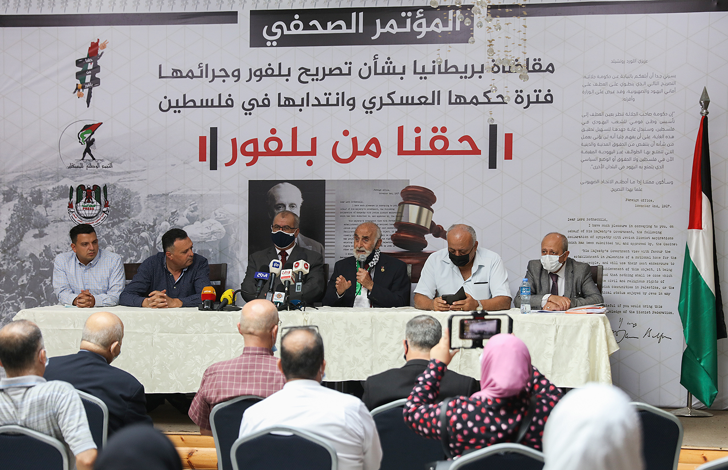 The National Gathering of Independents, the International Foundation for the Follow-up of the Rights of the Palestinian People, and the Palestinian Journalists Syndicate have filed a "lawsuit" in Palestinian court against the British government "regarding its responsibilities for the suffering of the Palestinian people during the period of the mandate," specifically the "sinister Balfour Declaration."